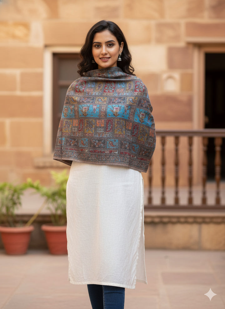 Block Paisley Kani Jaal Shawl