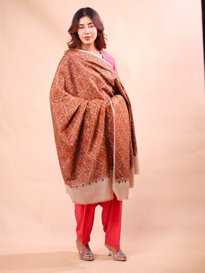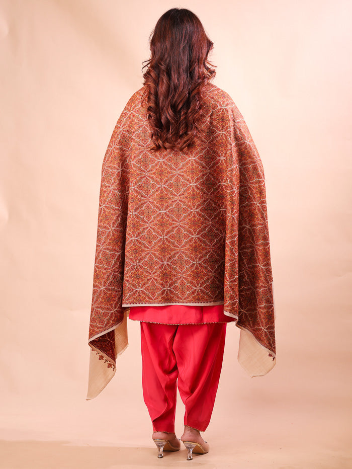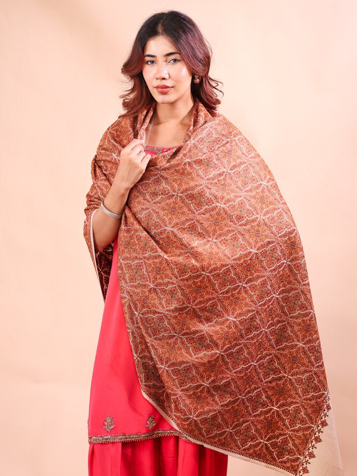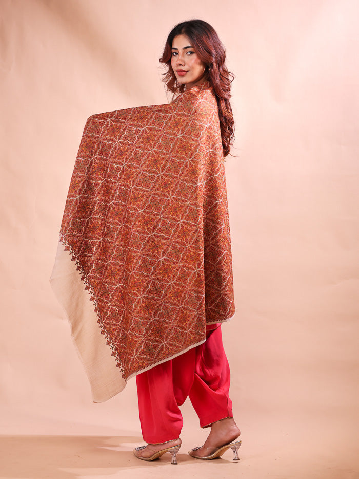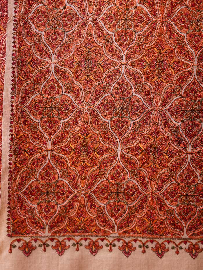 Cross Block Embroidery Shawl Beige