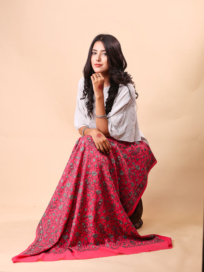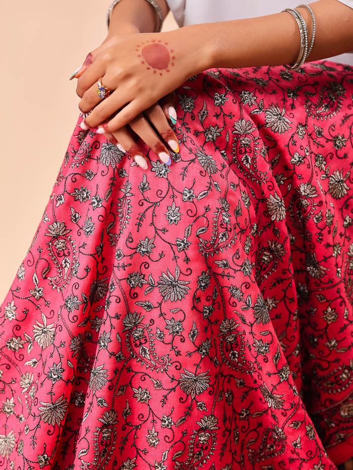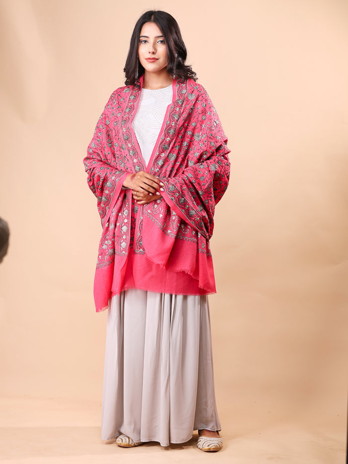 Small Paisley Zari Embroidery Shawl DJ Pink