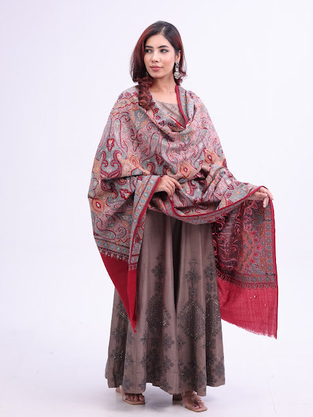 Vertical Paisley Kashmiri Embroidery Shawl Maroon
